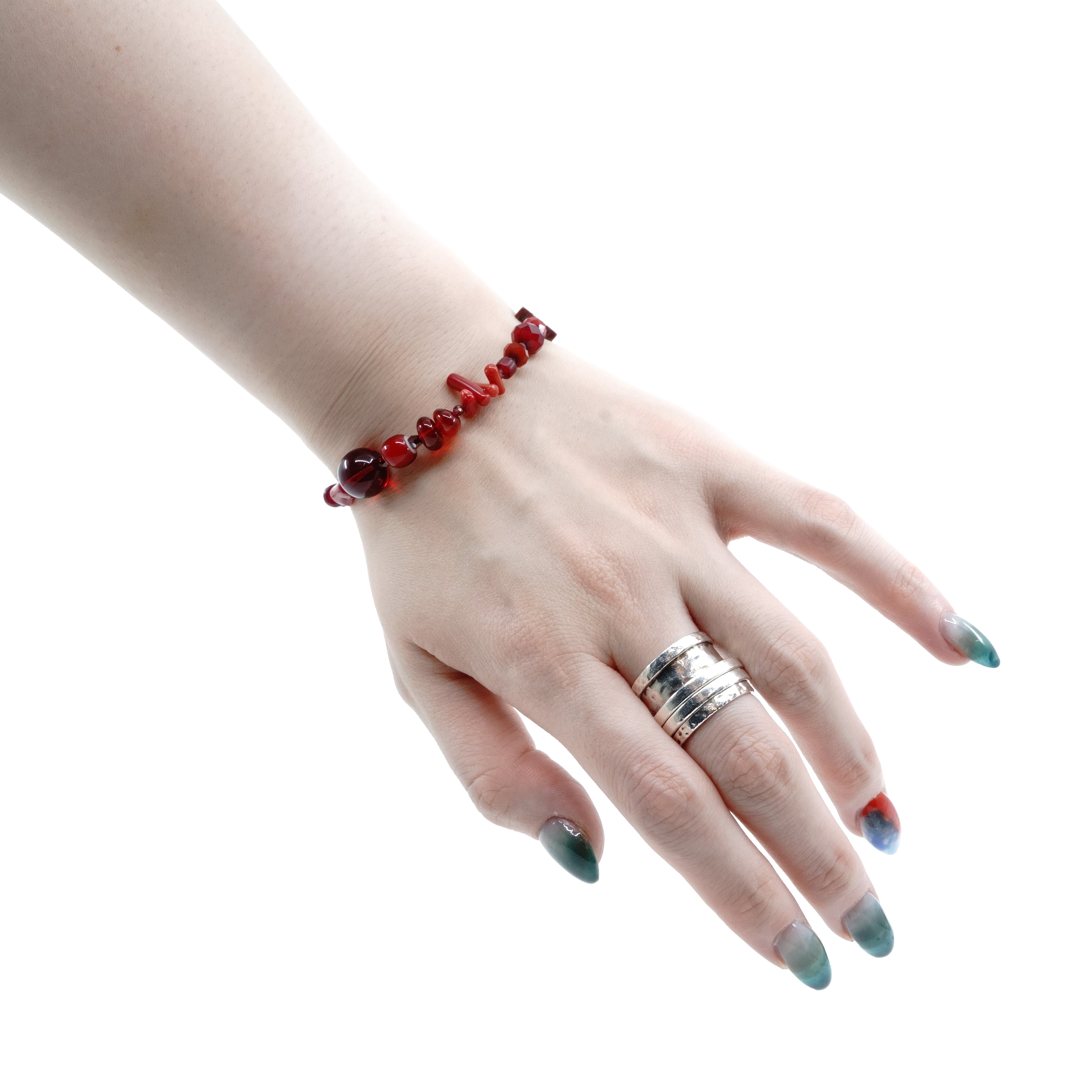 素材: 珊瑚,真鍮,スピネル,スワロフスキー,メノウ,ガーネット